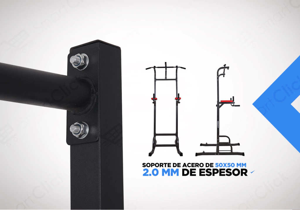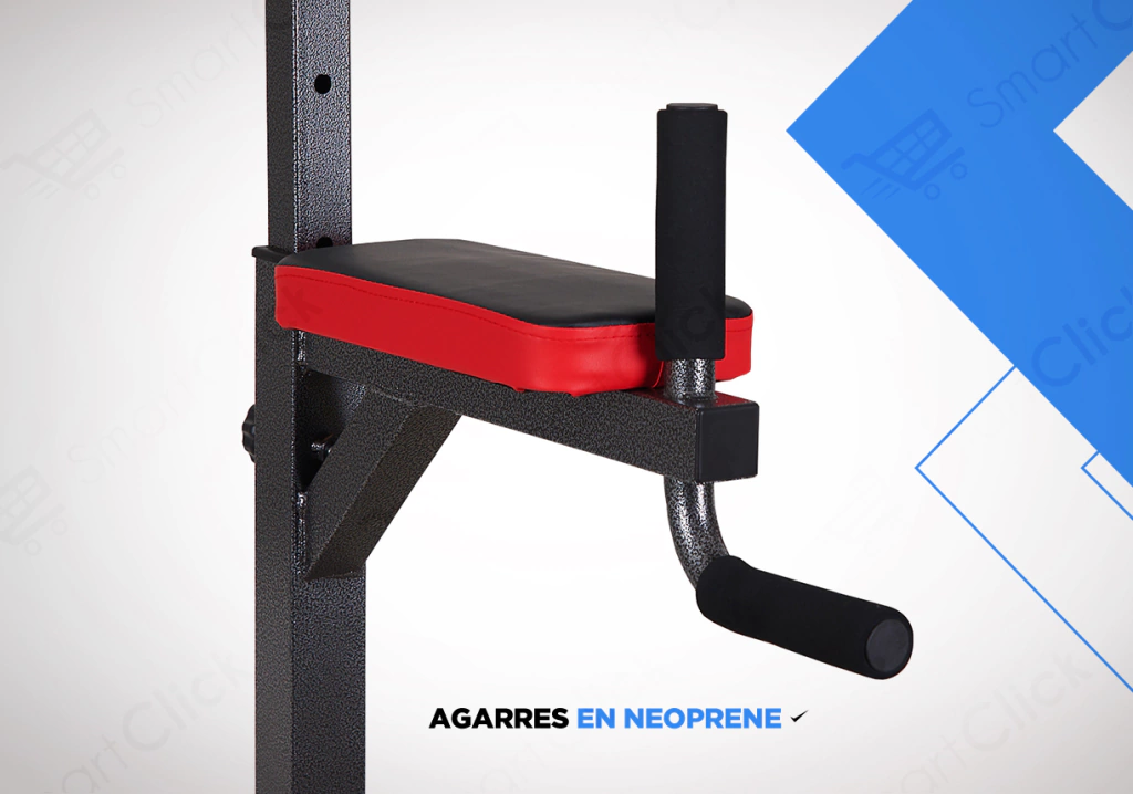 Robusta: Soporta hasta 250 kg, garantizando firmeza y seguridad para todos los ejercicios. Construcción en caño de acero de 50x50 mm, con un espesor de 2.0 mm y regatones de ABS para evitar deslizamientos.