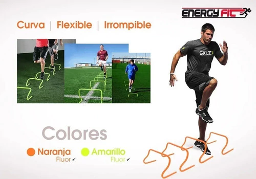 Estas vallas curvas de 30 cm de altura son ideales para entrenamientos de agilidad y funcionalidad. Con un diseño flexible e irrompible, son perfectas para rutinas de fútbol, rugby, gimnasia, rollers, hockey, voleibol, crossfit, y más. Su color fluorescente las hace visibles incluso en condiciones de niebla, garantizando seguridad y facilidad de uso durante cualquier actividad.
